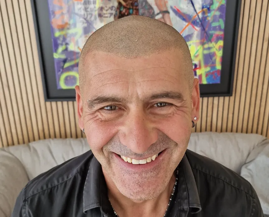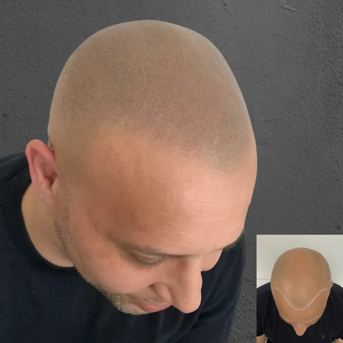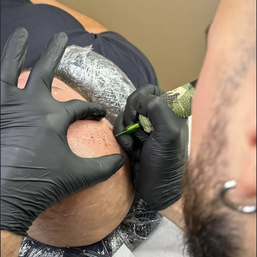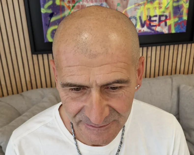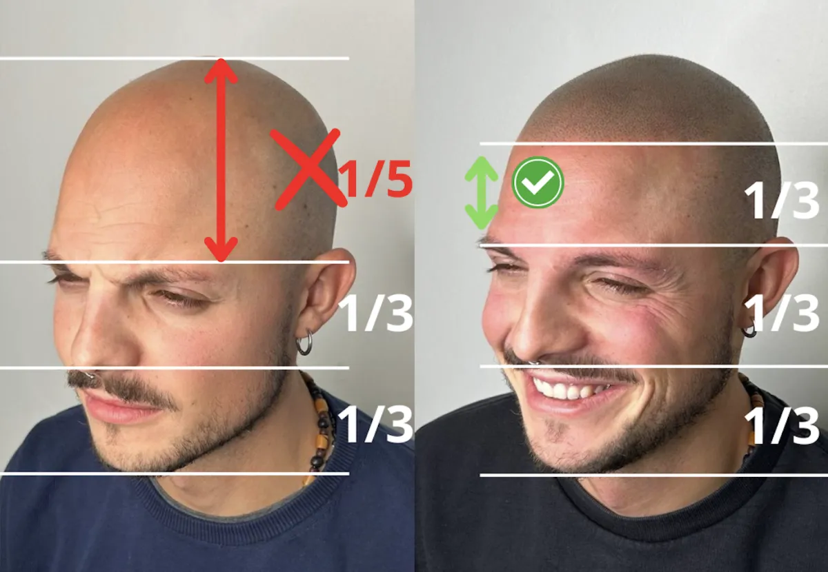Il lavoro consiste nel ricostruire un'attaccatura naturale dei capelli, migliorando le proporzioni del viso e offrendoti un look rasato realistico e omogeneo.